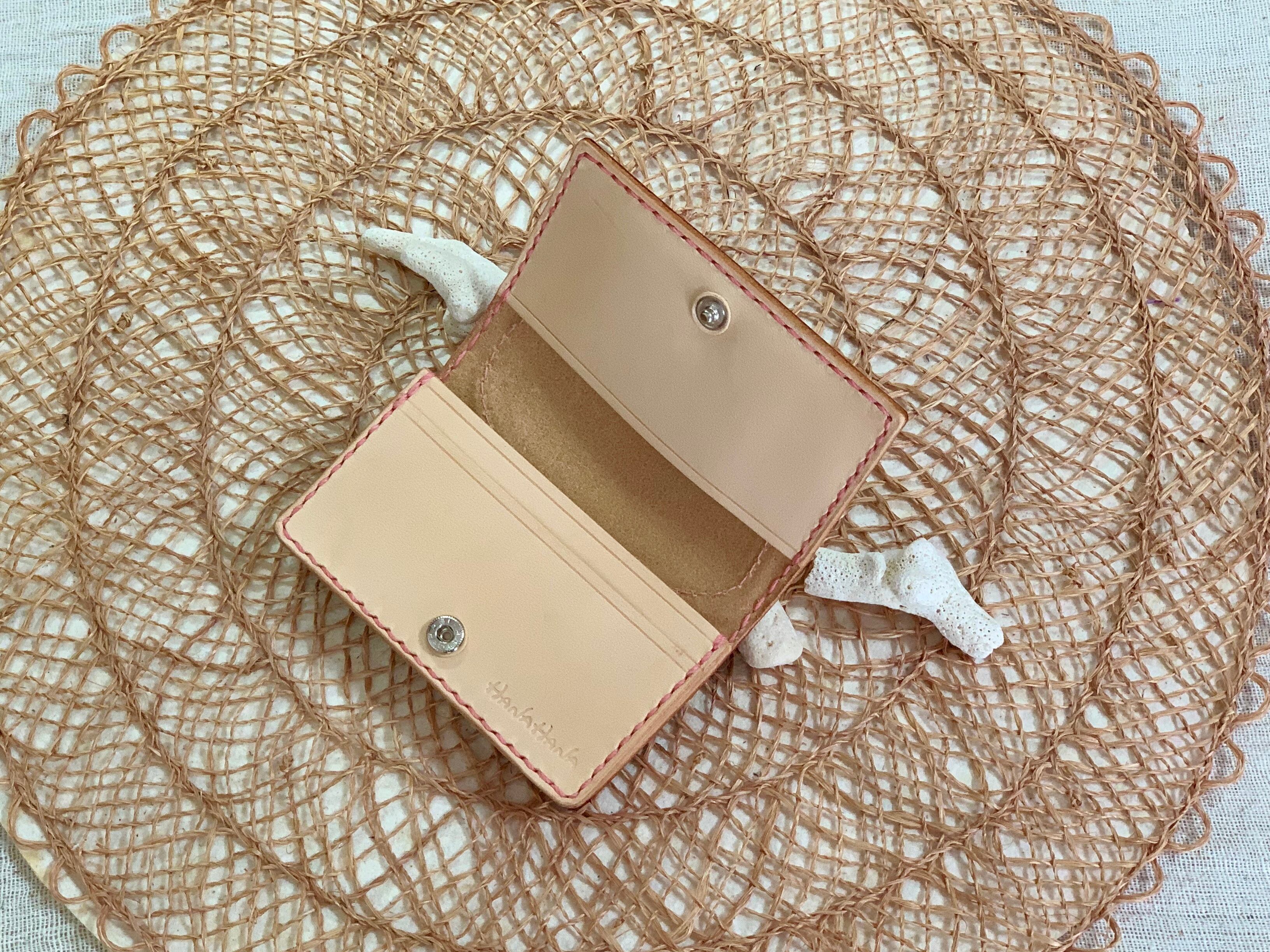 紅型パスケース (プルメリア柄)  革 赤・ピンク